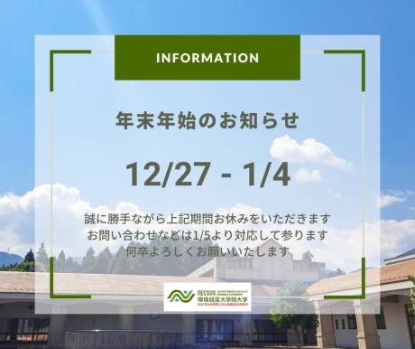 本学では、下記の期間を年末年始(冬季)休業期間とさせていただきます。